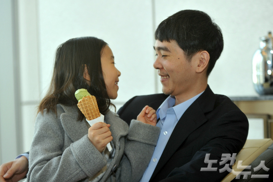이날 오후 1시부터 서울 광화문 포시즌 호텔에서 열린 '구글 딥마인드 챌린지 매치' 마지막 5국을 26분 앞둔 12시 34분, 이 9단은 딸과 함께 대국장으로 입장했다.
