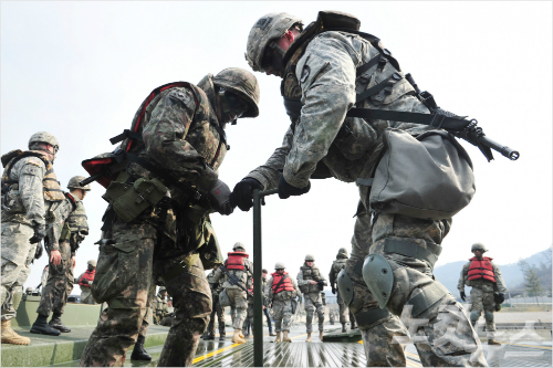 우리 군 제7공병여단과 미군 제2전투항공여단은 지난 14일부터 3박 4일 일정으로 7공병여단 도하훈련장에서 연합도하훈련을 진행 중이다.