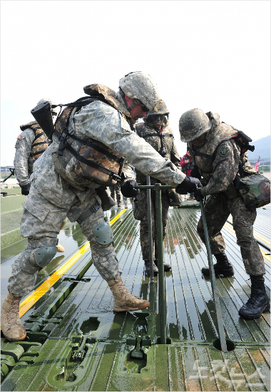 이번 훈련에는 한미 공병과 화학·방공부대 장병 등 130여명이 참가했고, 장갑차, 대공유도무기,도하장비 80여대가 투입됐다.