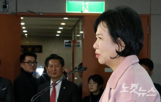 정청래 의원 지켜보는 가운데 출마 선언하는 손혜원 위원장