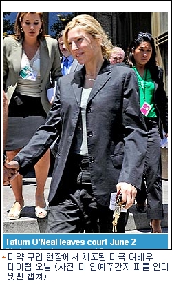 아카데미 최연소 수상 기록을 가진 미국의 여배우 테이텀 오닐(44)이 뉴욕 도심 한복판에서 마약을 구입하다 현장에서 체포됐다.