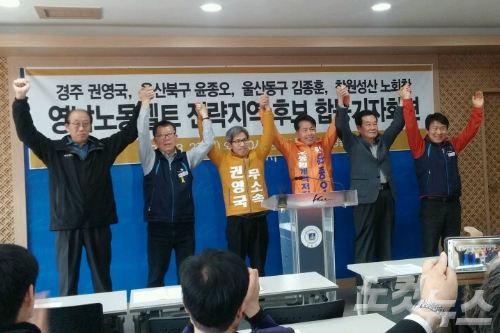 민주노총이 경북 경주와 울산, 경남 창원을 '영남 노동벨트 전략지역'으로 정하고 지지후보를 발표했다.