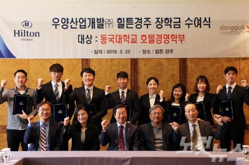 힐튼경주는 동국대 경주캠퍼스 호텔관광경영학부의 발전과 우수 인재 양성을 위해 지난 2014년부터 지금까지 총 10명에게 500만원의 장학금을 지급했으며, 2016학년도 1학기 장학금으로 8명의 학생에게 400만원의 장학금을 전달했다.