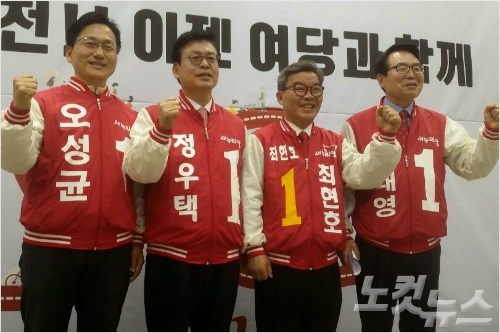 새누리당 청주권 후보 4명은 29일 충북도청에서 공동 기자회견을 열고 "통합 청주시 상생발전을 위해 공동 공약을 추진하겠다"고 선언했다.