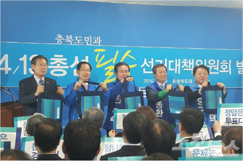 더민주 도당 선대위 상임위원장은 도종환 도당 위원장과 변재일, 오제세 국회의원이, 각 후보자들을 비롯해 노영우 목사와 양병기 청주대 교수 등 외부인사가 공동 선대위원장을 맡았다.