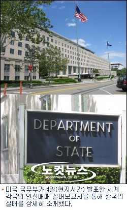 미국 국무부가 4일(현지시간) 발표한 세계 각국의 인신매매 실태보고서의 한 부분이다.
