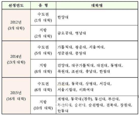교육부는 다음달초 사업설명회를 연 뒤 5월 16일까지 대학별로 사업계획서를 접수할 예정이다. 신규 신청 대학은 서면평가와 2단계 현장평가를 거쳐 7월중 최종 확정된다.