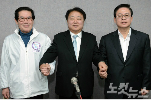 오른쪽부터 새누리 정우택, 더민주 한범덕, 친반통일 한대수 후보 (사진 = 중부매일)