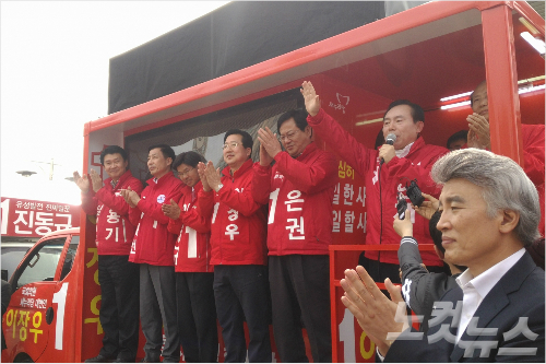 정용기, 이장우, 김신호, 이영규, 이은권, 이재선, 진동규 등 후보자들을 지원하기 위해 이인제 중앙선거대책위원회 공동위원장과 새누리당 비례대표 후보 2번인 이종명 전 육군대령 등이 함께 했다.