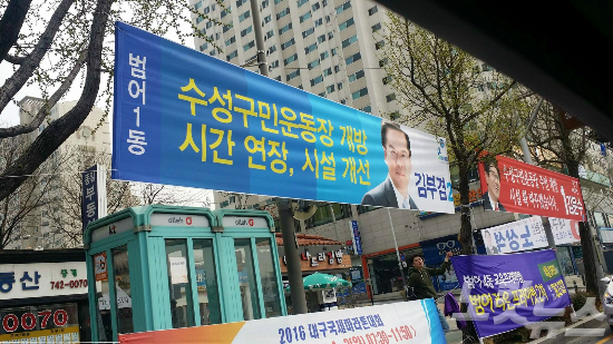 대구 수성갑 더불어민주당 김부겸 후보 선거대책본부는 3일 보도자료를 통해 "김문수 후보 측이 자신들의 공약 현수막을 베꼈다"며 공약 베끼기 중단을 요구했다.