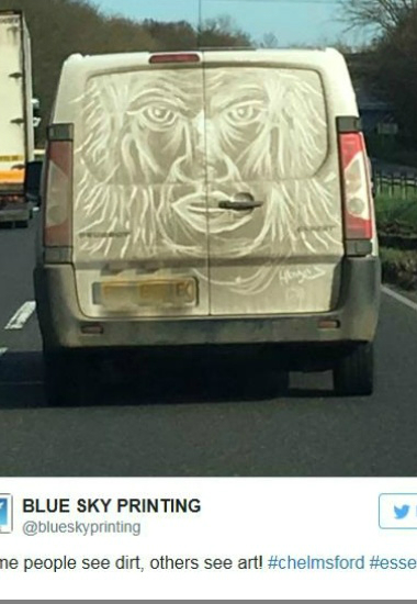 2일(현지시간) BBC는 배달용 밴차량에 켜켜이 쌓인 먼지를 이용해 그럴 듯한 예술작품을 만들어내는 영국 동부 출신 청년 아티스트 공주샤(22)의 사연을 소개했다.
