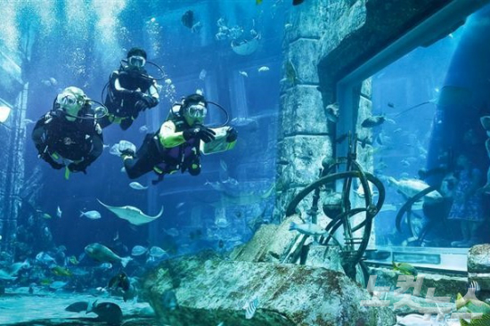 ◇ 사막의 도시에서 즐기는 바다 속 세상, 두바이 아쿠아리움·로스트 챔버스쿠버다이빙을 하지 않더라도 바다 속 세상 체험도 가능하다. 1000만L 규모의 수족관을 자랑하는 두바이 아쿠아리움은 세계에서 가장 많은 샌드 타이거상어와 3만3000마리를 비롯해 70여 종의 넘는 해양 생물을 보유한 세계 최대의 아쿠아리움이다.