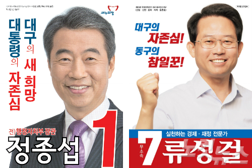 대구 동구갑 지역의 각종 여론 조사 결과를 보면, 새누리당 정종섭, 무소속 류성걸 2강 체제가 뚜렷하다.