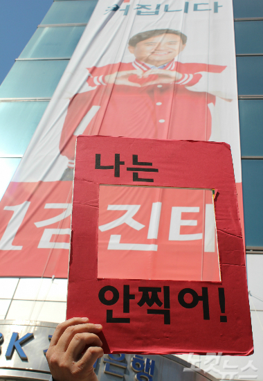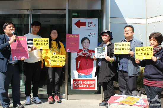 '2016 총선시민네트워크(이하 총선넷)가 11일 춘천 새누리당 김진태 후보사무소 앞에서 김진태 후보의 사퇴'를 촉구했다.