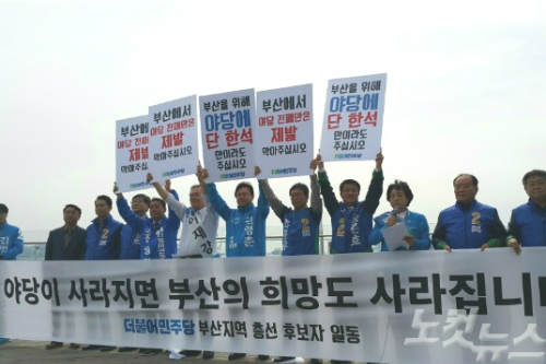 이에 맞서 더불어민주당 총선 후보들은 이날 오전 10시 부산역 남측 3층 테라스에서 기자회견을 열고 "부산에서 야당이 전패하는 것을 막아 달라"고 시민에게 호소한 뒤 지역구 표밭을 누비고 있다.