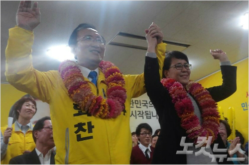 노회찬 후보는 14일 총선 개표가 77.29% 진행된 상황에서 4만 8315표를 획득하며 3만 7746표를 얻은 현역인 새누리당 강기윤 후보를 앞서며 당선이 확실시 되고 있다.