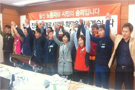 민주노총 권오길 울산 본부장은 "일찌감치 후보 단일화를 이뤄낸 노동자들은 친재벌, 반노동 정책을 밀어붙인 박근혜 정부와 새누리당을 심판했다"고 말했다.