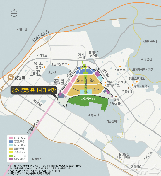 창원 중동 유니시티 개발사업 위치도.