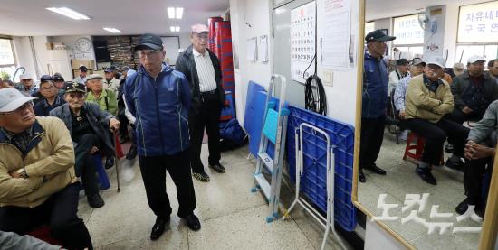 기자회견 지켜보는 대한민국어버이연합 회원들