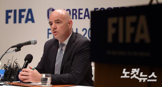 지안니 인판티노 국제축구연맹(FIFA) 회장이 27일 오후 서울 삼성동 아이파크타워에서 열린 내한 기자회견에 참석해 취재진의 질문에 답하고 있다.