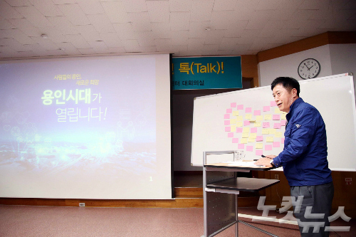 정 시장이 이달말까지 31개 읍면동을 순회하며 주민들의 의견을 듣는 간담회는 '100만 시민과의 대화, 용인愛 톡(talk)톡(talk)'이다.