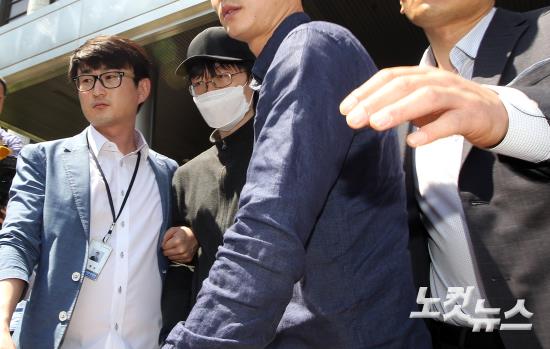 지난 17일 서울 강남역 인근 노래방 화장실에서 직장인 A씨(23·여)를 살해한 혐의를 받고 있는 피의자 김모(34)씨가 19일 오후 영장실질심사를 받기 위해 서초경찰서를 나서고 있다.{RELNEWS:right}