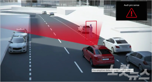 전부 3단계로 이루어지는 경고 및 정지 안전 시스템인 이 기능은 카메라를 통해 보행자 및 차량 감지 필요시 운전자에게 경고하고 운전자가 반응하지 않으면 차가 자동으로 제동한다.