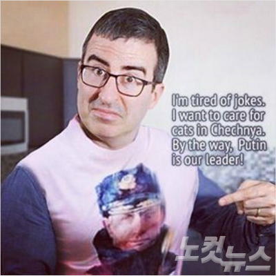 카디로프는 이에 맞서 존 올리버가 푸틴의 초상화가 들어 있는 티 셔츠를 입고 놀리는 모습에 “농담들 지겹다. 나는 체첸 고양이들을 돌보고 싶다. 그리고 푸틴이 우리 지도자다!”라는 글을 적어넣은 사진을 인스타그램에 올렸다.