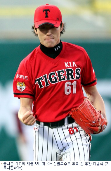 지난해까지 단 1승도 올리지 못했던 KIA 오른손 영건 이범석(23)이 당당한 선발진의 한 축으로 우뚝 섰다.