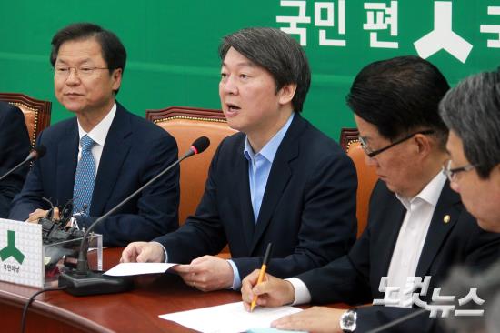 20대 국회 임기 첫 날인 30일 국회에서 열린 국민의당 최고위 회의에서 안철수 상임공동대표가 정부의 국회법 개정안 거부권과 관련 발언을 하고 있다.