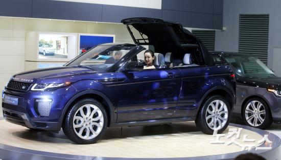 재규어 랜드로버가 2일 오전 부산 해운대구 벡스코에서 진행된 ‘부산국제모터쇼’ 미디어데이에서 럭셔리 컴팩트 SUV 컨버터블인 랜드로버의 레인지로버 '이보크 컨버터블'을 공개하고 있다.