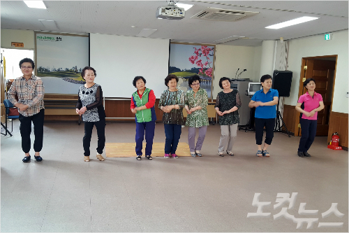 홍매화골 어르신 극단 어르신들이 다같이 연극을 연습하고 있다. (사진 = 전남CBS 김유리 아나운서)