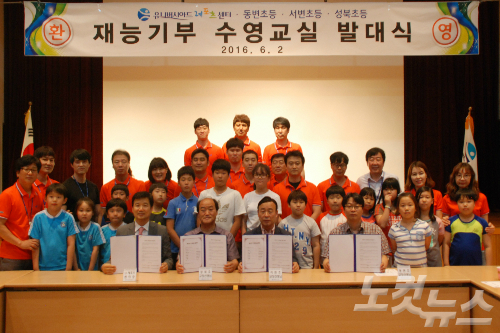 대구도시공사 산하 유니버시아드 레포츠센터는 2일 동변초등학교를 비롯한 3개 학교와 재능 기부 수영 교실을 운영하기로 하는 협약을 맺었다.