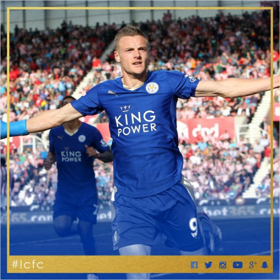 지난 시즌 잉글랜드 프리미어리그에서 24골을 터뜨리며 맹활약한 공격수 제이미 바디는 자신의 바이아웃 금액을 제시한 아스널로 이적을 고심하고 있다.(사진=레스터 시티 공식 트위터 갈무리)