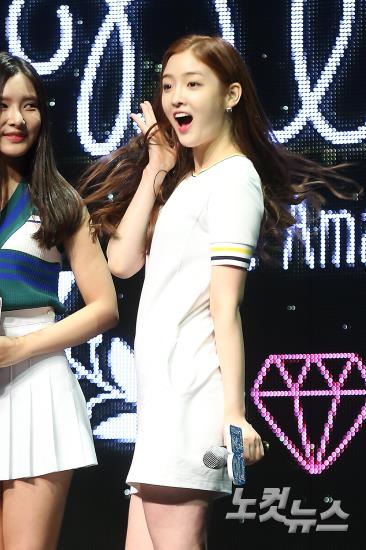 걸그룹 다이아의 은진이 14일 오후 서울 마포구 서교동 롯데카드 아트센터에서 열린 두 번째 앨범 '해피엔딩' 쇼케이스에서 포즈를 취하고 있다.