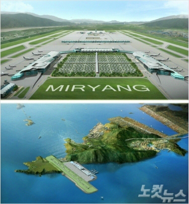 상단은 밀양공항 조감도, 하단은 가덕신공항 조감도 (사진=자료사진)