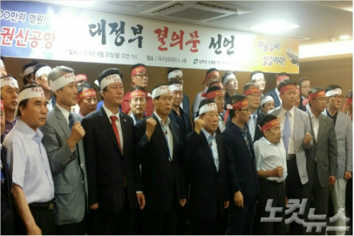 남부권신공항 범시도민추진위원회가 20일 대구상공회의소에서 대정부 건의문을 발표하고 구호를 외치고 있다.(사진=자료사진)