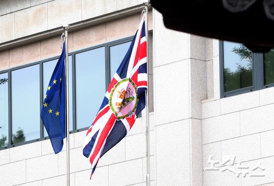 영국의 유럽연합(EU) 탈퇴(브렉시트) 여부를 묻는 국민투표의 개표가 진행되고 있는 가운데 영국 언론은 일제히 EU탈퇴로 결론 날 가능성이 높다고 보도하고 있다. 사진은 24일 서울 정동 주한영국대사관 모습.