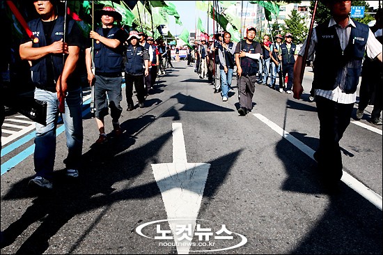 [BestNocut_R]16일 오후 서울 대학로에서 열린 ''고유가 해결, 건설기계임대차계약서 현장안착화를 위한 건설기계노동자 총파업 결의대회''를 마친 참가자들이 청계광장을 향해 행진하고 있다.