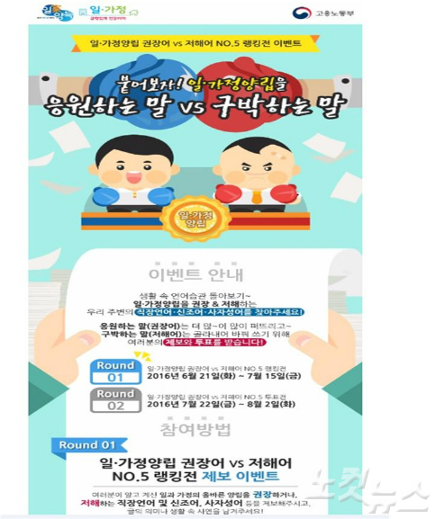 현재 '일家양득 홈페이지(worklife.kr)'에서는 권장어와 저해어에 대한 공모 이벤트가 실시 중이다.