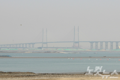 충남 당진과 경기 평택을 잇는 서해대교 하늘이 뿌옇다. 초미세먼지와 오존 등 충남 서북부 지역의 대기 환경은 '이미' 위험한 수준이다. (사진=신석우 기자)