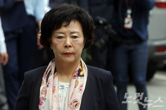 신영자 롯데장학재단 이사장이 정운호 전 네이처리퍼블릭 대표의 롯데면세점 입점 로비 의혹으로 1일 오전 서울 서초동 중앙지검에 피의자 신분으로 소환되고 있다. (사진=황진환 기자)