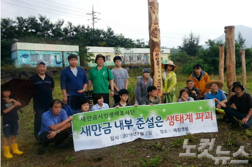새만금 내부 준설에 반대하는 새만금시민생태조사단. (사진=새만금시민생태조사단 제공)