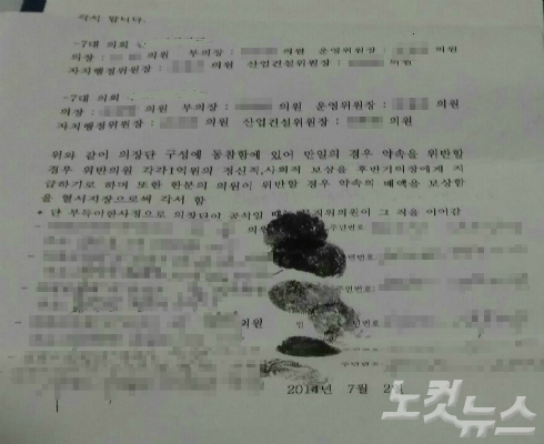 심지어 각서에는 후반기 의장으로 밀어주기로 한 후보를 지지하지 않으면 2억 원을 보상해야 한다는 내용도 담겨 있다.