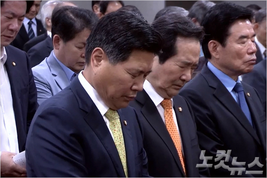 "눈물 흘리는 많은 국민들이 우리 국회를 바라보면서 웃음을 갖게 하옵소서. 기쁨을 갖게 도와주옵소서."