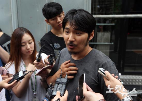 7일 오전 서울 신사동 유명 힙합듀오 ‘리쌍’ 의 건물에 세들어 있는 곱창집 ‘우장창창’ 에 대한 강제철거가 집행된 가운데 가게 주인 서윤수(39)씨 가 취재진과 인터뷰를 하고 있다.