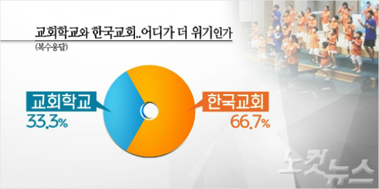 '교회학교와 한국교회 중 어디가 더 위기인가' 라는 질문에 한국교회 66.7%, 교회학교 33.3%로 조사돼 교회학교의 위기가 한국교회의 근본적인 문제에서 파생됐음을 알수 있다.