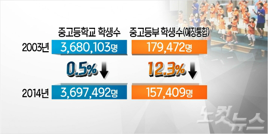 같은 기간 중·고등학생은 0.5% 감소에 그쳤으나 중고등부학생은 12.3% 줄어 학생수 감소폭보다 훨씬 높았다.
