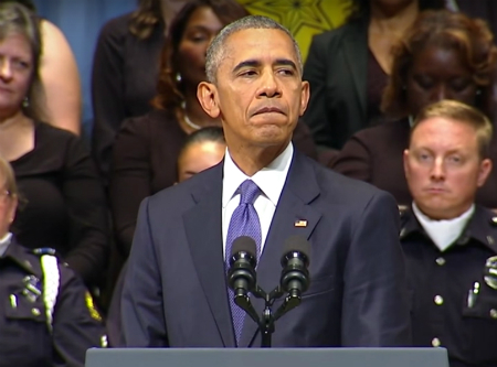 댈러스 사망 경관 추도식에서 연설하는 오바마 대통령(사진=유튜브 캡처)
