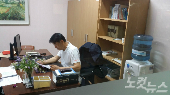 노관규 전 순천시장이 순천지원에서 무료 법률 상담 자료를 살펴보고 있다. (사진=고영호 기자)